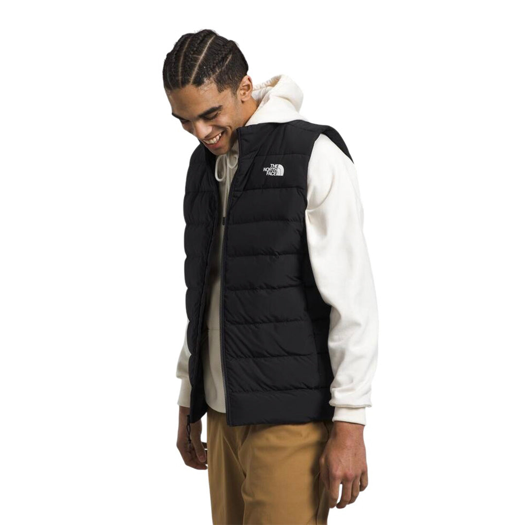 El chaleco Aconcagua para hombre favorita de los fanáticos para incluir tela corporal 100% reciclada, relleno 600 totalmente reciclado y aislamiento sintético. El chaleco Aconcagua 3 para hombre proporciona la calidez central que necesitas, con movilidad sin restricciones. Hecho de tela de poliéster 100% reciclado, este chaleco resistente al agua cuenta con un acabado duradero repelente al agua (DWR) para mayor protección contra los elementos. Con una forma favorecedora y amplia movilidad a través del pecho y los hombros, este chaleco se ajusta a la talla real para un movimiento fácil y cómodo y se puede llevar sobre capas medias.